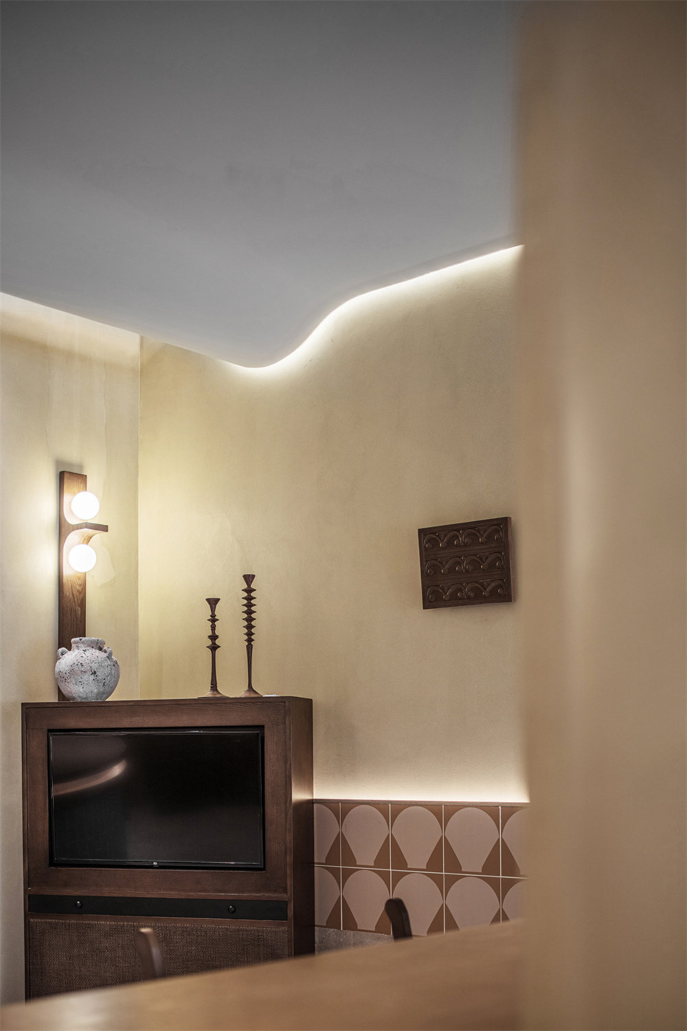 所谓普遍式光源是指此光源能将室内的光线提升到一定的亮度。因为这种光源是店铺装修的过程中普遍使用,并且提供大范围的照明,所以称之为普遍是光源。普遍式光源分为吸顶灯和吊灯两种:
