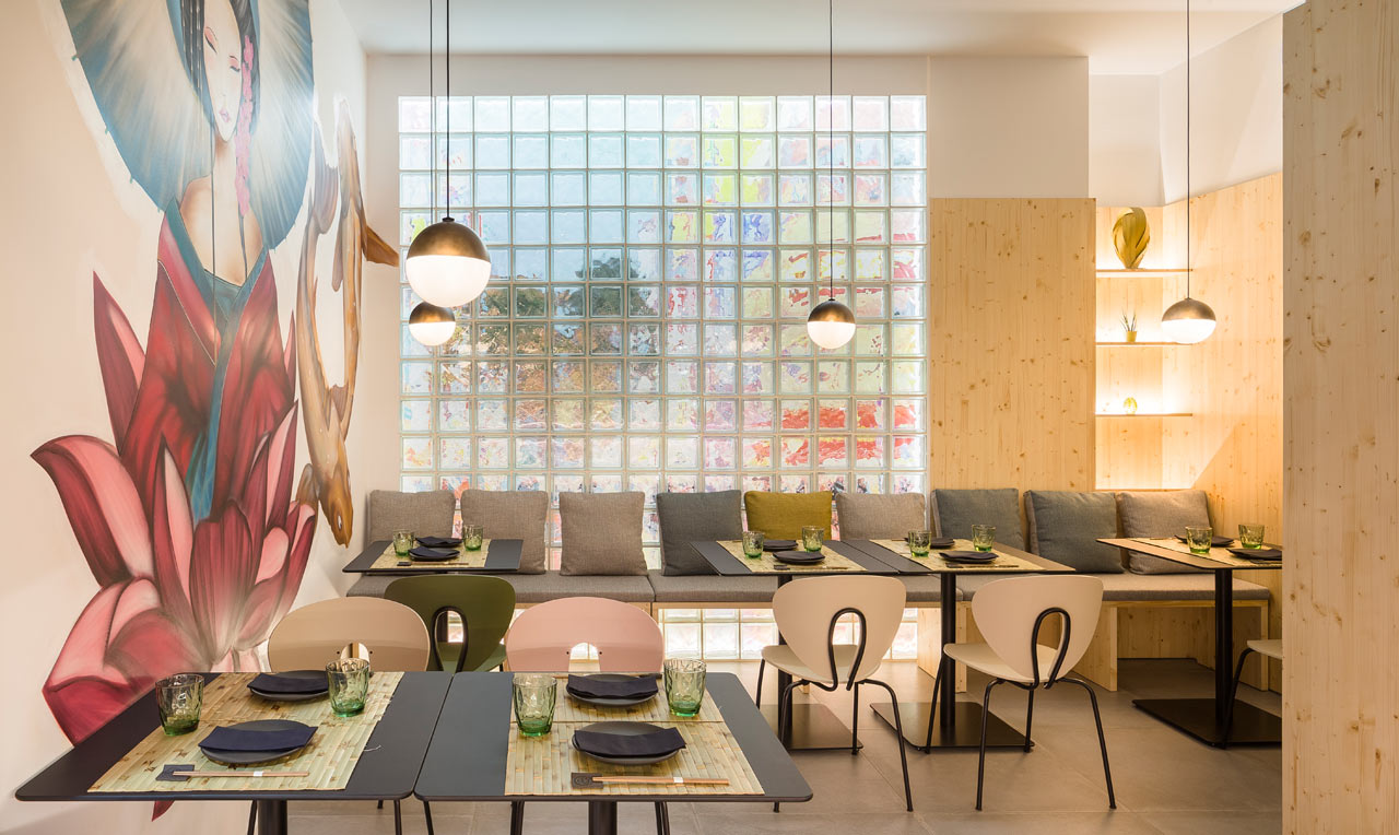 1:壁纸的花色接近成千万种,再加上一些设计师别出心裁的设计,壁纸的图案就更多。在这种情况下,如何选择适合店铺的壁纸图案呢?岚禾设计师认为,需要根据店铺的主题风格和定位来确定壁纸的图案,如果单单考虑壁纸而跟店铺整体风格不协调,会有适得其反的效果。