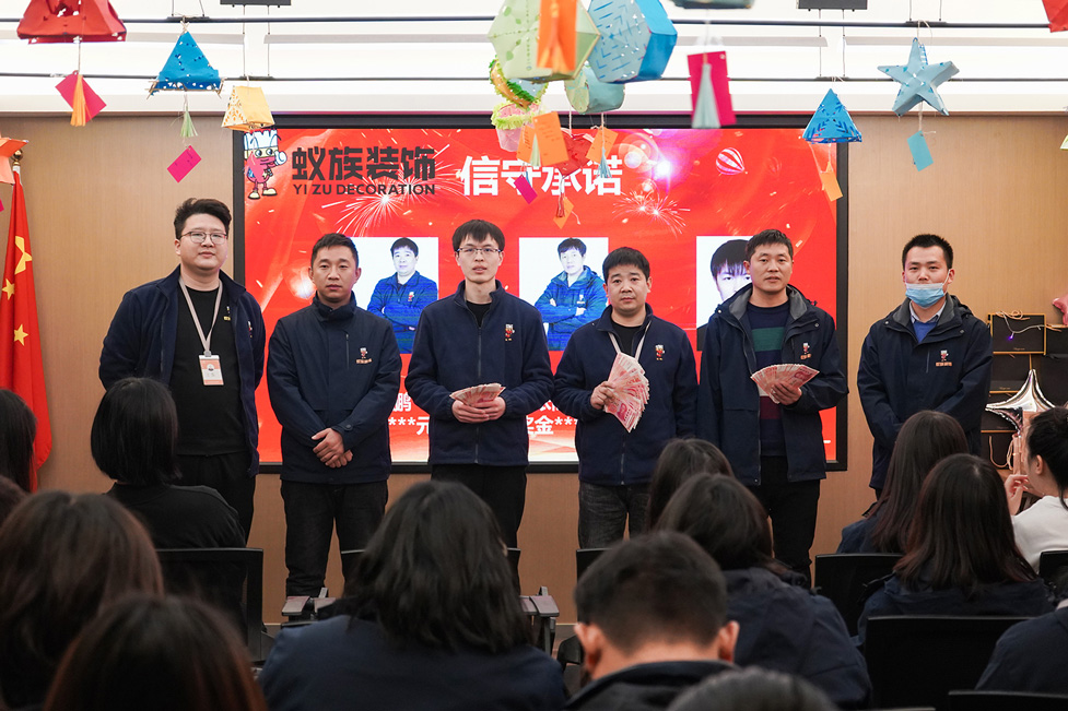 2022年2月16日河南蚁族装饰工程有限公司员工在郑州总部举行开工仪式。