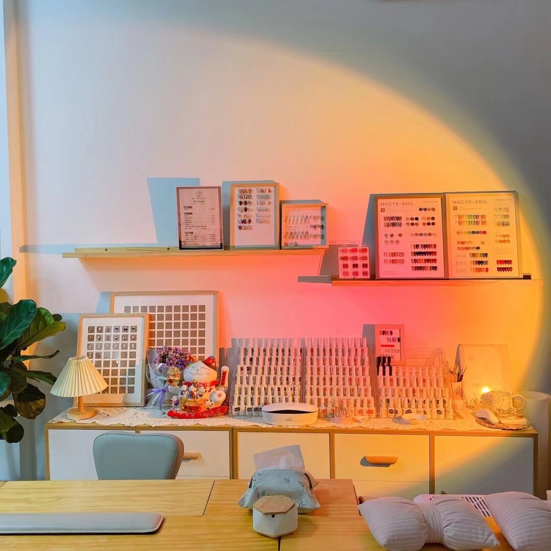 美甲店装修总体色调要以暖色系为主,这样才能让客人感到舒适,对于美甲产品的笔架、手托等,可以选用瓷白色或者雅黑色,让客人感觉到专业。