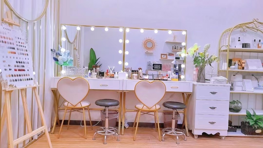 美甲区是美甲店最重要的区域。装修时也要跟整个风格相匹配,建议选择鲜艳的桌椅,吸引消费者的目光,桌面上陈列的美甲器皿要整整齐齐,看起来美观又便于观赏。且镜子的摆放位置要突出实用。