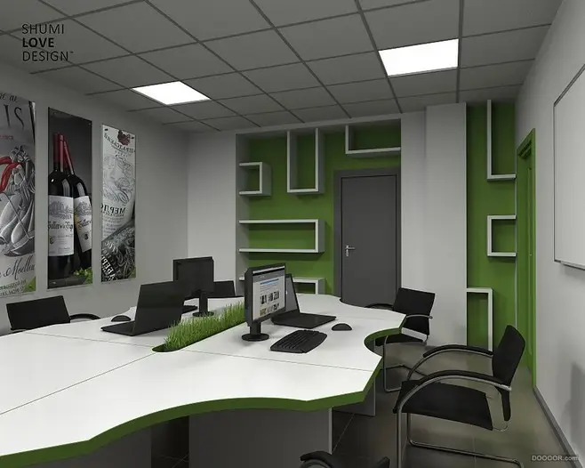 小型办公室一般可以适用于10-20人办公,设计中增加接待室、小型会议室,是近年来很受欢迎的设计。最重要的是小型办公室空间发展有限,而企业又需要不断满足开会、办公、洽谈等功能需求,必须通过设置一个相应的功能研究区域,所以关键问题在于如何科学合理有效进行学习空间结构布局。