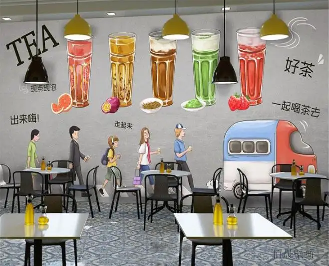 3、清新田园风奶茶店