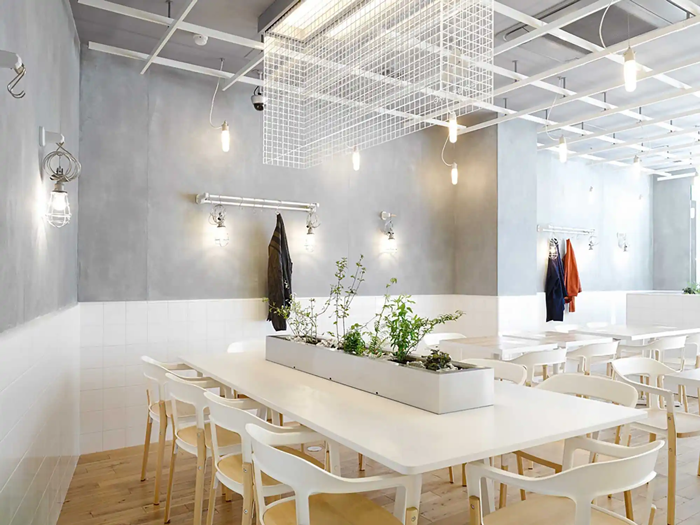 典雅简约的装修,最适合和三两老友在空隙之余交换聊心的上上之抉择,面向的是知性的消费群体,应用银色和白色来搭配,点缀一点绿植,给顾客一种轻松愉悦的感觉,独自享受都市里特有的宁静。