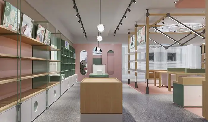 接下来可以进行地砖的铺设和吊顶的设置,在母婴用品店铺地砖,设置防滑地砖,防止顾客滑倒。吊顶确定好位置,再进行吊杆安装,最后整理下细节,刷漆。墙面的话可以根据整体的风格,贴墙纸或者刷墙漆。