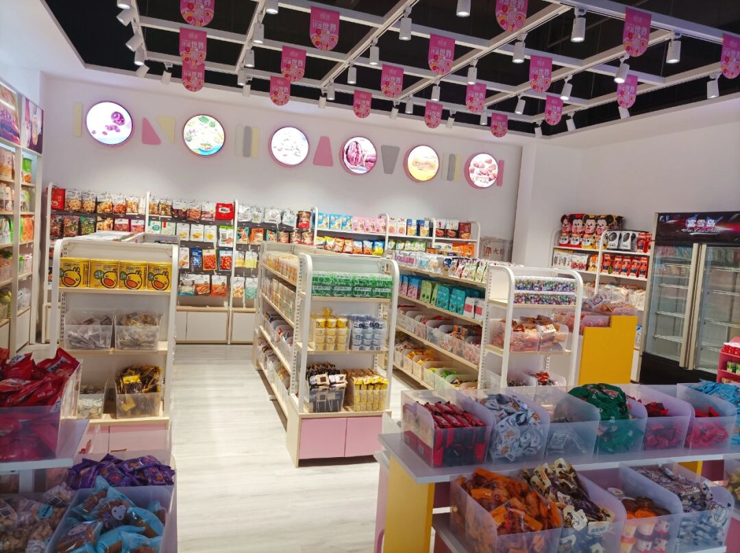 好的零食店铺,除了装修特别之外,产品的摆放也是非常重要的,不但可以营造店铺的氛围,又能提升顾客的购买欲望。