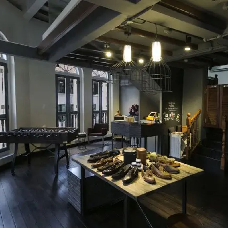 男鞋鞋店装修风格上,要吻合男性的阳刚硬朗之气,大多数会选择简约的现代风进行装修,简洁实用。男鞋多是深色系的,看起来比较的成熟和稳重,在色彩搭配上,应当化繁为简,避免使用过多而复杂的颜色组合,可使用灰色、褐色和咖啡色等。