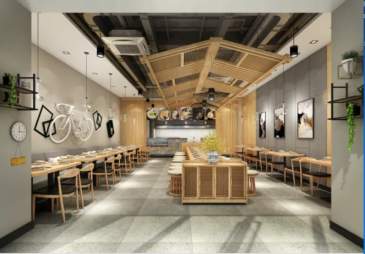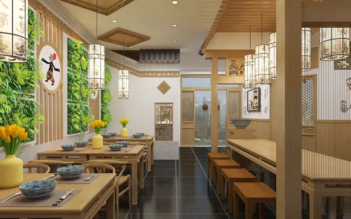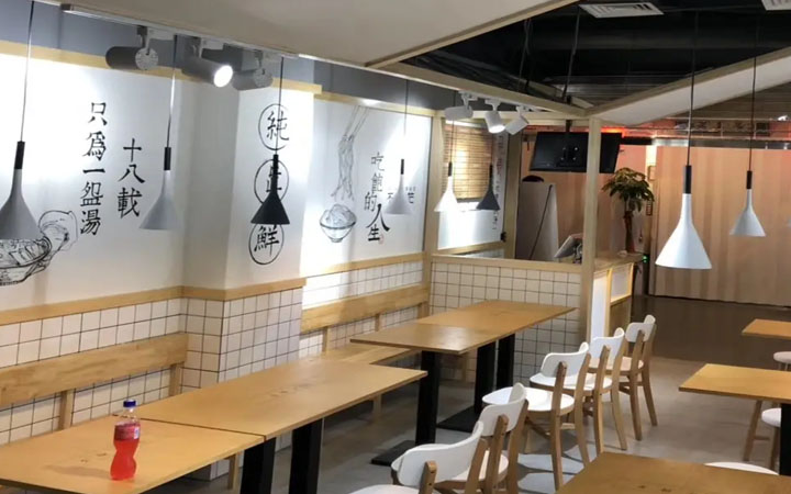 面馆的整体空间较小,可采用左、中、右分布,左右两边按照横向进行摆放,这样可以使得整个空间布局视觉上更加开阔,使得整个店铺看上去有秩序,有氛围,空间灵活性、整体性更大;如果布局分布不合理,会给人混乱没有秩序,给消费者也是一种不舒适的感觉,小面馆装修要以简约实用为主,这样给消费者一种舒适感。