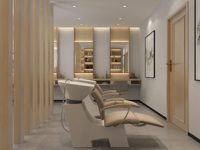 店铺风格多样,选择一个跟养发馆的文化相融合,用心营造专业感、放松感,舒适的氛围??梢栽诖钆渖舷鹿Ψ?,以浅色为主,让客户放下急躁、不安的情绪,避开过于明亮的彩色,以免造成视觉上的刺激感。