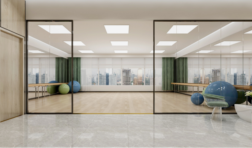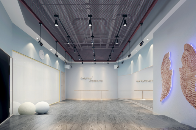 主要用材:石膏板、铝方通、舞蹈地板、木地板、防火板、乳胶漆